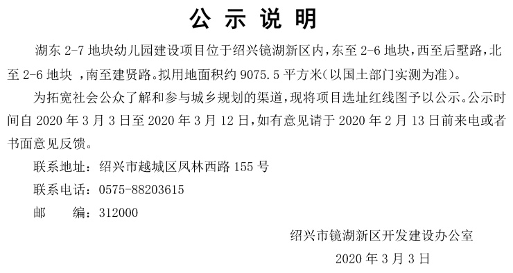 镜湖新区湖东2-7地块幼儿园建设项目选址许可规划公示