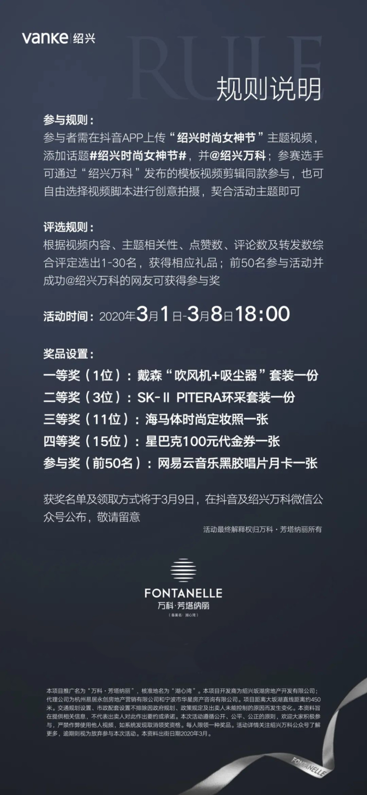 获奖名单将于3月9日,在抖音及绍兴万科微信公众号公布,敬请留意