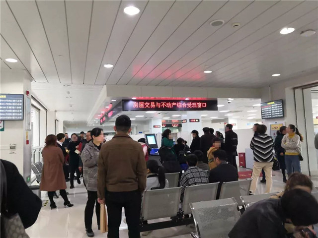 二手房相关事项办理窗口,市民正在排队