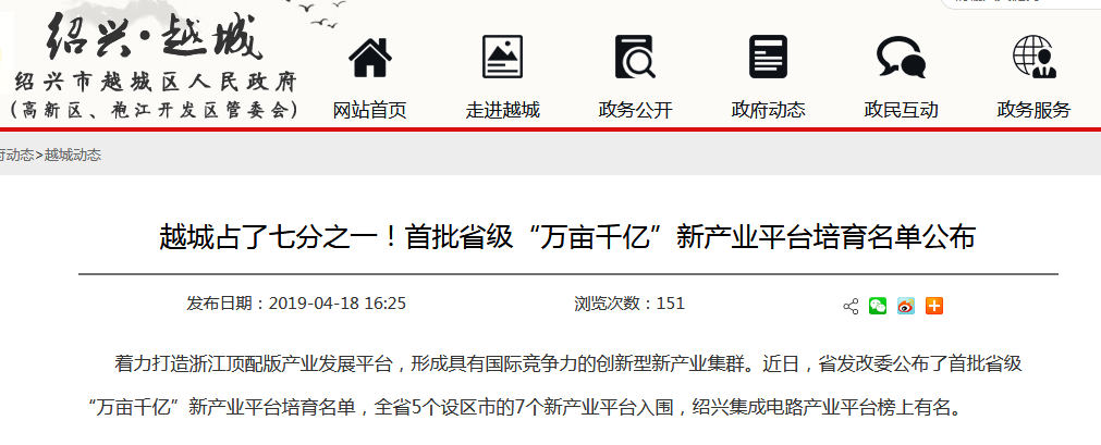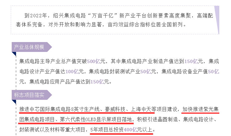 4月份,绍兴集成电路产业入选首批省“万亩千亿”新产业平台培育名单。