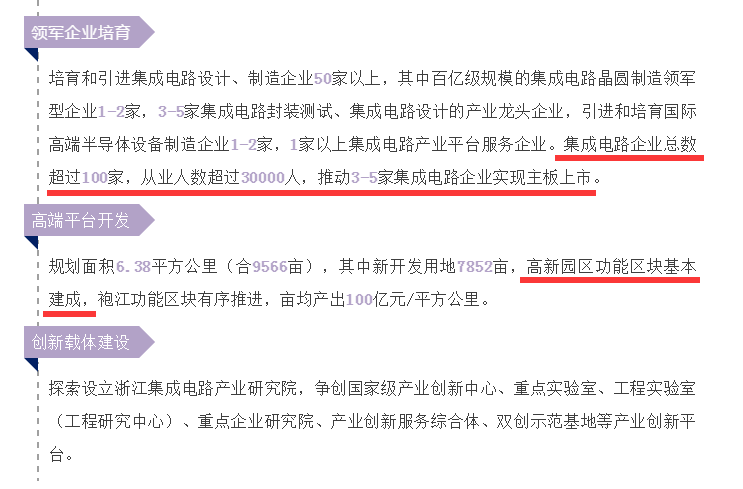 皋埠(高新园区)和袍江,作为集成电路小镇两大园区规划落址,成为未来产业的新方向,预计亩均产出100亿元/亩。其中,皋埠(高新园区)的功能区块基本建成。
