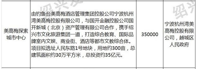 其中,投资金额达35亿元的美高梅探索城市中心项目,拟将规划落址皋埠的人民东路1号地块。