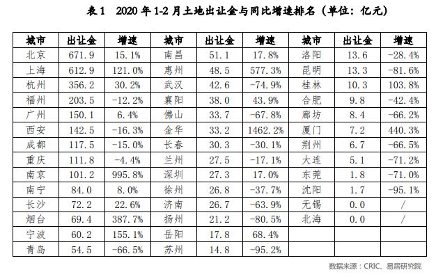 报告指出,本次新冠肺炎疫情事件对土地市场造成了较大影响,部分土地出让计划推迟,房企受现金流压力影响拿地也相对谨慎。