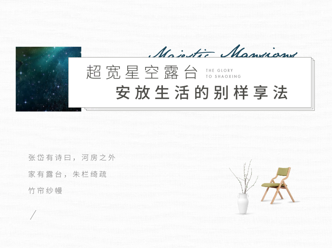 安放一张瑜伽垫,星空露台就是太太的室外瑜伽空间,沉浸于自然的风情,来一场舒展身心的修行;布置沙发与茶几,星空露台就是先生的会客空间,沐浴皎洁月光与三五好友小酌闲聊,尽享生活的畅意;摆放绿植盆栽,星空露台就是长辈的自然花园,尽享饲花弄草之闲情逸趣;放置天文望远镜,星空露台就是孩子的观星乐园,学习星空知识,感知宇宙浩瀚。